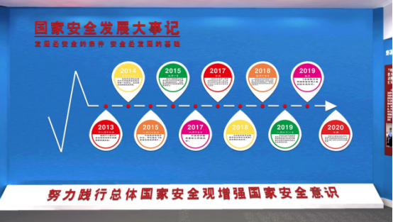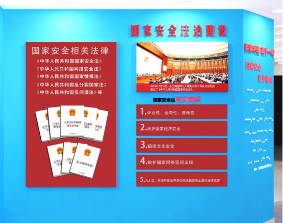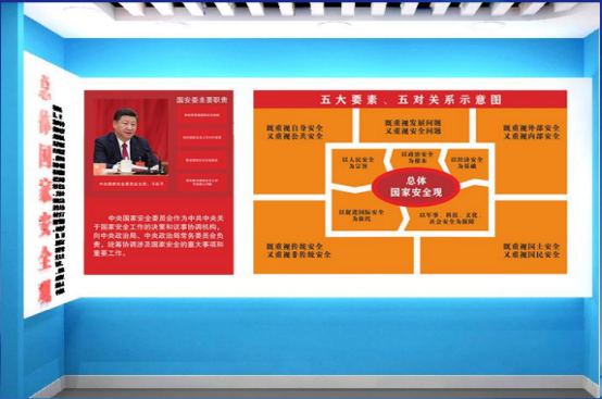 展廳一:展示了“總體國(guó)家安全觀”的誕生、內(nèi)容、體系、制度、法律等內(nèi)容,讓游客從整體上把握“總體國(guó)家安全觀”。