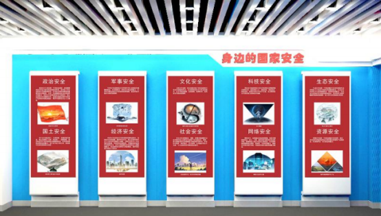 展廳二:從網(wǎng)絡(luò)、社會(huì)、金融、生態(tài)、政治五個(gè)方面深入剖析國(guó)家安全“總體國(guó)家安全觀”,將國(guó)家安全與每位參觀者緊密聯(lián)系。
