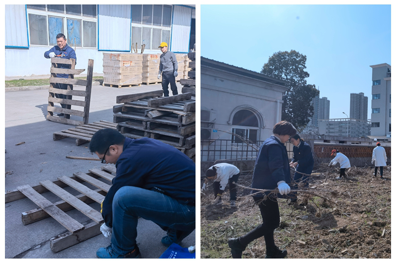 活動中,志愿服務(wù)隊分成兩組。一組對儲運木質(zhì)托盤進(jìn)行逐一檢查,挑揀出破損托盤,認(rèn)真維修,共維修托盤40余個。另一組相互配合清運廠區(qū)較大枯樹枝,維護(hù)廠區(qū)良好環(huán)境。