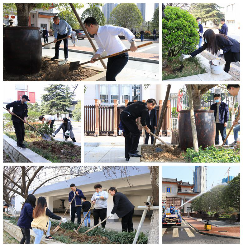 頭頂驕陽,沐浴春風(fēng),大家揮灑熱情與汗水,齊心協(xié)力、分工合作,為園區(qū)道路兩旁樹木松土、施肥、澆水,幫助樹木茁壯成長,共筑綠色家園。