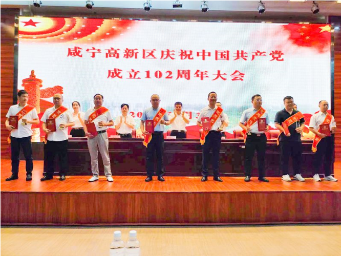 近日,咸寧高新區(qū)慶祝中國共產(chǎn)黨成立102周年大會(huì)在黃鶴樓森林美酒小鎮(zhèn)成功召開,咸寧高新區(qū)黨工委書記、管委會(huì)主任夏福卿及班子成員出席會(huì)議,黃鶴樓酒業(yè)黨委委員、咸寧分廠廠長兼采購中心總監(jiān)謝毅參加會(huì)議。