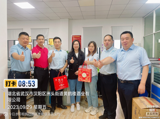 9月29日,正值中秋佳節(jié),黃鶴樓酒業(yè)黨委副書記、總經(jīng)理朱向紅,黨委委員、副總經(jīng)理王超一行走訪了商超、酒店、促銷、業(yè)務(wù)、財務(wù)部等多個部門,慰問仍奮戰(zhàn)在一線的前后臺營銷將士們。