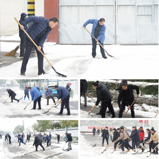 從正門樓到物流門,大家齊心協(xié)力開辟通道;從帽子手套全副武裝到單衣膠鞋輕裝上陣,大家在冰雪中揮灑汗水;從廠內(nèi)小道到廠外大道,大家奮勇爭(zhēng)先便利民眾;從公司領(lǐng)導(dǎo)到基層員工,大家用實(shí)際行動(dòng)踐行“三個(gè)人人”行為理念。經(jīng)過(guò)三個(gè)多小時(shí)的奮力清掃,廠區(qū)內(nèi)主要通行道路“安全路”全部開辟完成。