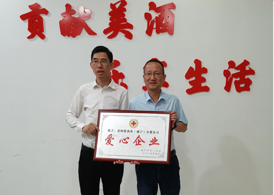 會(huì)上,胡漢雄代表咸寧市紅十字會(huì)向黃鶴樓酒業(yè)(咸寧)有限公司授予咸寧市“愛心企業(yè)”稱號(hào)。