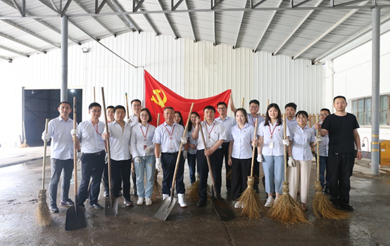 活動現(xiàn)場,黨員同志熱情高漲,紛紛擼起袖子、拿起工具投入勞動之中,齊心協(xié)力將車間清洗干凈。
